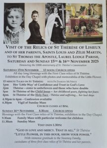 St Therese Relics Visit to St Thomas the Apostle Laurel Lodge Parish